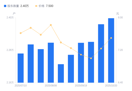 近一年(2024年10月10日至2025年10月10日),博深股份A股股东户数从2.23万户,增加至2.38万户,增幅6.66%,区间股价上涨12.77%。