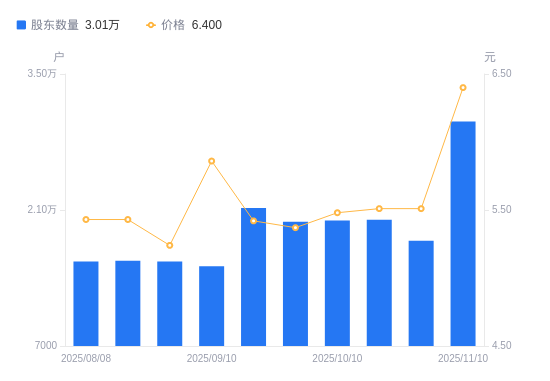 近一年(2024年11月20日至2025年11月10日),罗普斯金A股股东户数从1.51万户,增加至3.01万户,增幅99.27%,区间股价上涨17.22%。