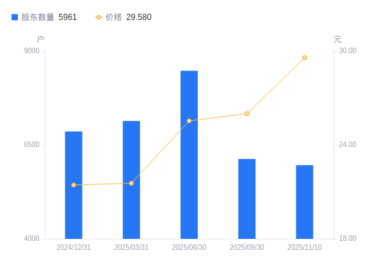 近一年(2024年12月31日至2025年11月10日),利仁科技A股股东户数从6860户,减低至5961户,降幅13.10%,区间股价上涨35.61%。