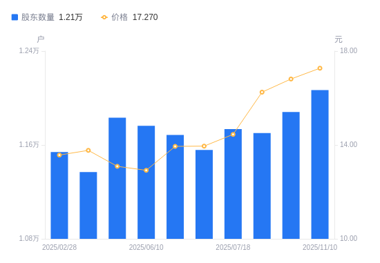 近一年(2024年12月31日至2025年11月10日),三达膜A股股东户数从1.16万户,增加至1.21万户,增幅3.77%,区间股价上涨29.17%。