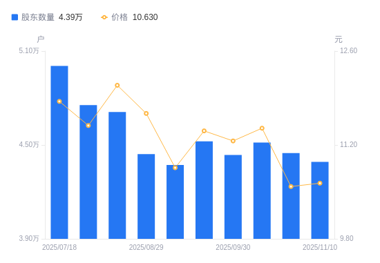 近一年(2024年11月20日至2025年11月10日),立昂技术A股股东户数从3.92万户,增加至4.39万户,增幅12.03%,区间股价上涨12.85%。