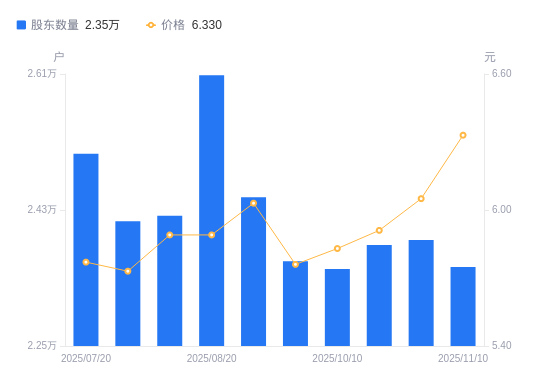 近一年(2024年11月20日至2025年10月31日),通程控股A股股东户数从2.54万户,减低至2.39万户,降幅6.04%,区间股价上涨15.02%。
