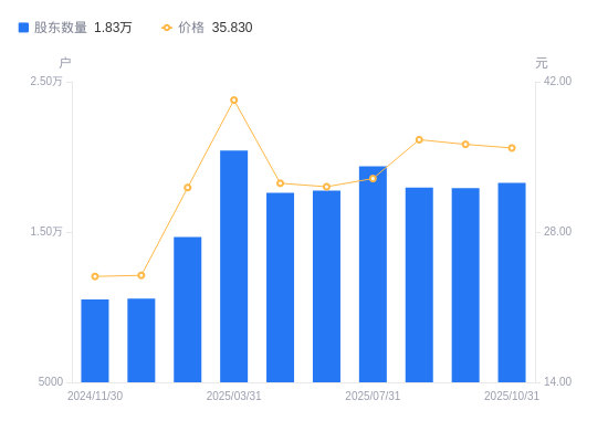 近一年(2024年10月31日至2025年10月31日),微光股份A股股东户数从1.12万户,增加至1.83万户,增幅63.44%,区间股价上涨71.81%。