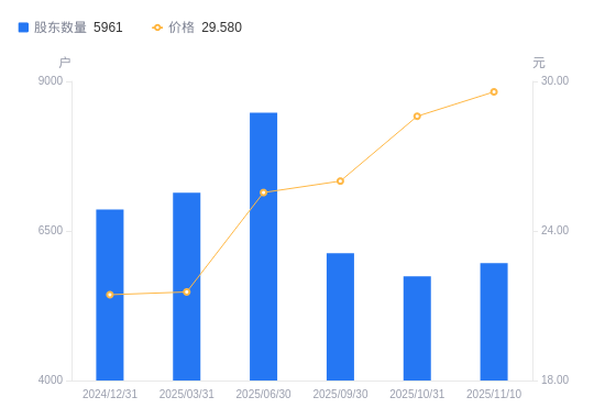 近一年(2024年12月31日至2025年10月31日),利仁科技A股股东户数从6860户,减低至5740户,降幅16.33%,区间股价上涨31.12%。