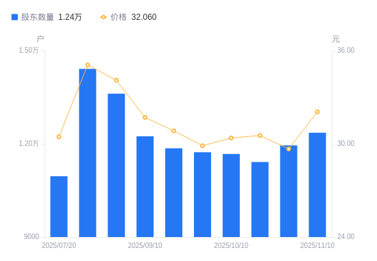 近一年(2024年11月20日至2025年11月10日),大宏立A股股东户数从1.21万户,增加至1.24万户,增幅2.46%,区间股价上涨11.01%。