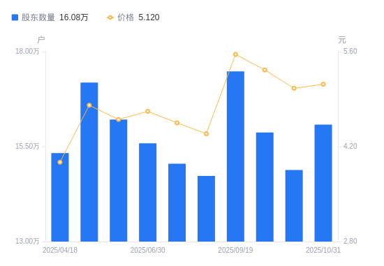 近一年(2024年11月20日至2025年11月10日),春兴精工A股股东户数从17.35万户,减低至15.56万户,降幅10.30%,区间股价上涨6.97%。
