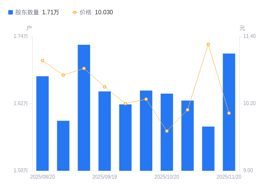 近一年(2024年11月20日至2025年11月20日),富临运业A股股东户数从1.92万户,减低至1.71万户,降幅11.11%,区间股价上涨55.02%。