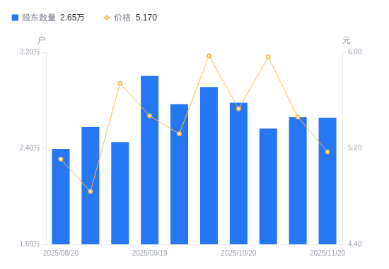 近一年(2024年11月20日至2025年11月20日),浩物股份A股股东户数从2.87万户,减低至2.65万户,降幅7.47%,区间股价上涨25.18%。