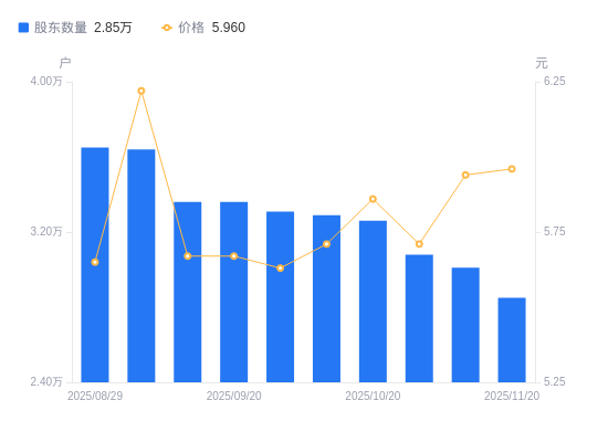 近一年(2024年11月20日至2025年11月10日),明牌珠宝A股股东户数从2.17万户,增加至3.01万户,增幅38.71%,区间股价上涨20.49%。