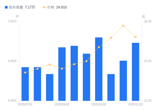 近一年(2024年11月20日至2025年11月20日),神火股份A股股东户数从8.1万户,减低至7.17万户,降幅11.48%,区间股价上涨55.27%。
