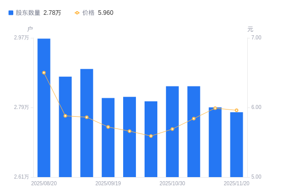 近一年(2024年11月20日至2025年11月20日),凯普生物A股股东户数从3.67万户,减低至2.78万户,降幅24.34%,区间股价下跌16.64%。