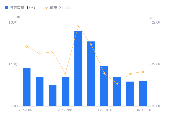 近一年(2024年11月20日至2025年11月20日),东星医疗A股股东户数从1.11万户,减低至1.02万户,降幅8.24%,区间股价上涨1.53%。