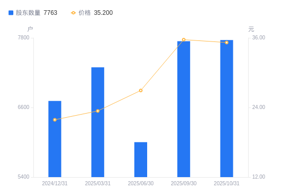 近一年(2024年12月31日至2025年10月31日),吉贝尔A股股东户数从6712户,增加至7763户,增幅15.66%,区间股价上涨61.17%。