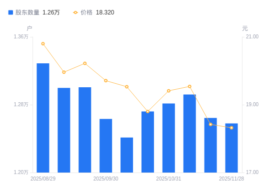 近一年(2024年12月31日至2025年11月28日),英特科技A股股东户数从1.42万户,减低至1.26万户,降幅11.18%,区间股价上涨3.49%。