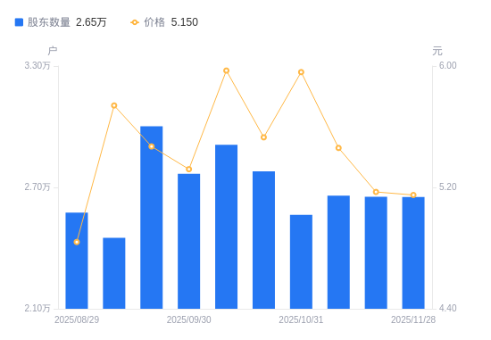 近一年(2024年11月29日至2025年11月28日),浩物股份A股股东户数从2.73万户,减低至2.65万户,降幅2.77%,区间股价上涨23.80%。