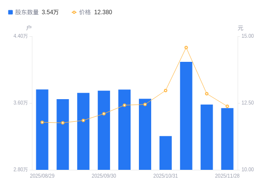 近一年(2024年11月29日至2025年11月28日),佳电股份A股股东户数从2.54万户,增加至3.54万户,增幅39.16%,区间股价上涨9.28%。