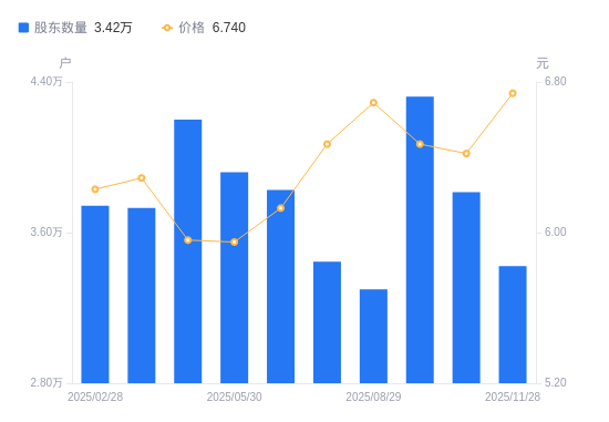 近一年(2024年11月29日至2025年11月28日),桂林旅游A股股东户数从3.97万户,减低至3.42万户,降幅13.84%,区间股价上涨1.20%。