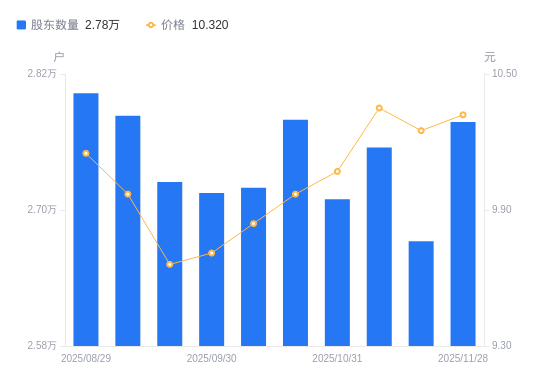 近一年(2024年11月29日至2025年11月28日),陇神戎发A股股东户数从2.91万户,减低至2.78万户,降幅4.58%,区间股价上涨8.86%。
