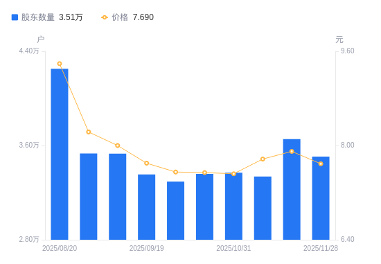 近一年(2024年11月29日至2025年11月28日),利德曼A股股东户数从1.92万户,增加至3.51万户,增幅82.18%,区间股价上涨38.56%。