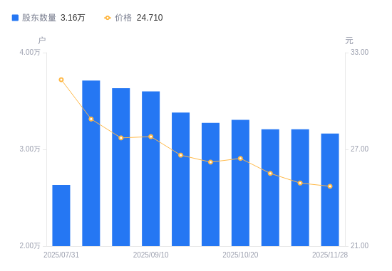 近一年(2024年11月29日至2025年11月28日),奇正藏药A股股东户数从1.98万户,增加至3.16万户,增幅59.63%,区间股价上涨13.65%。