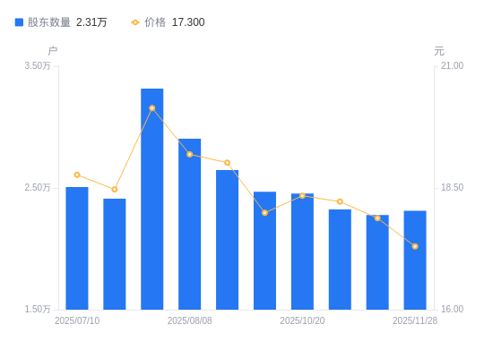 | 日期 | A股户数(户) | 流通A股户均持股数(股) | 户均持股市值(万元) |