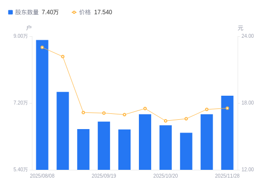 | 日期 | A股户数(户) | 流通A股户均持股数(股) | 户均持股市值(万元) |