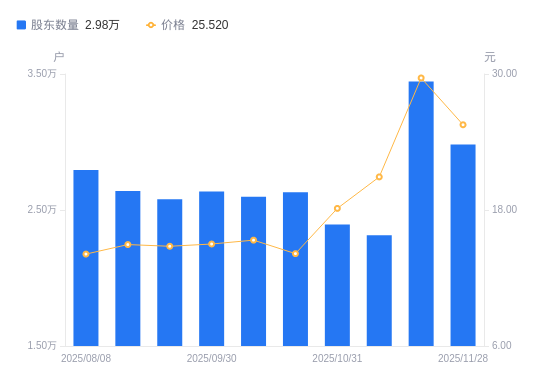 近一年(2024年10月31日至2025年10月31日),国城矿业A股股东户数从1.97万户,增加至2.39万户,增幅21.19%,区间股价上涨50.79%。