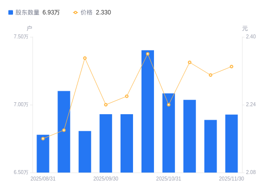 近一年(2024年11月20日至2025年11月20日),新里程A股股东户数从5.74万户,增加至6.89万户,增幅20.05%,区间股价下跌16.61%。