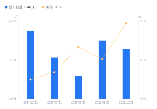 近一年(2024年12月31日至2025年10月31日),罗莱生活A股股东户数从2.55万户,减低至2.46万户,降幅3.67%,区间股价上涨32.04%。