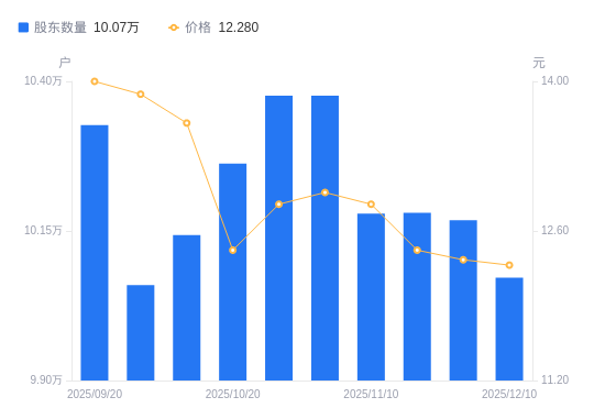 近一年(2024年12月10日至2025年12月10日),广电运通A股股东户数从11.23万户,减低至10.07万户,降幅10.33%,区间股价下跌5.03%。