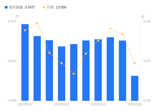 近一年(2024年12月10日至2025年12月10日),朗玛信息A股股东户数从4.42万户,减低至3.54万户,降幅19.98%,区间股价下跌22.26%。