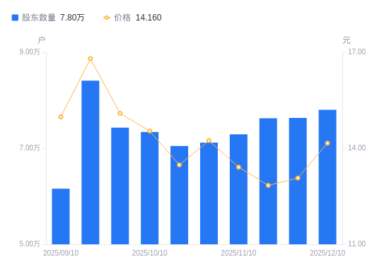 近一年(2024年12月10日至2025年12月10日),崇达技术A股股东户数从6.24万户,增加至7.8万户,增幅24.95%,区间股价上涨39.51%。