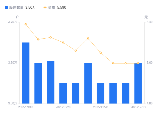 近一年(2024年12月20日至2025年12月10日),海利得A股股东户数从3.2万户,增加至3.5万户,增幅9.38%,区间股价上涨28.65%。