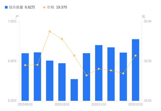 近一年(2024年12月10日至2025年12月10日),航发控制A股股东户数从5.63万户,增加至6.82万户,增幅21.12%,区间股价下跌9.56%。