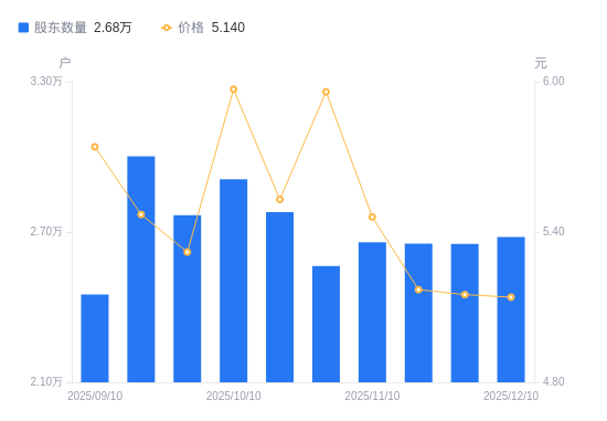 近一年(2024年12月10日至2025年12月10日),浩物股份A股股东户数从2.77万户,减低至2.68万户,降幅3.08%,区间股价上涨18.98%。