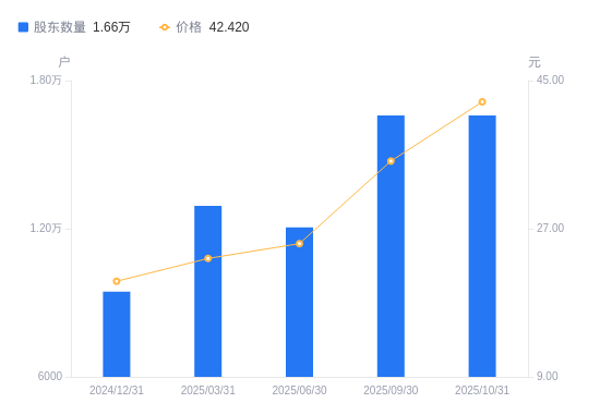 近一年(2024年12月31日至2025年10月31日),南方路机A股股东户数从9454户,增加至1.66万户,增幅75.44%,区间股价上涨102.39%。