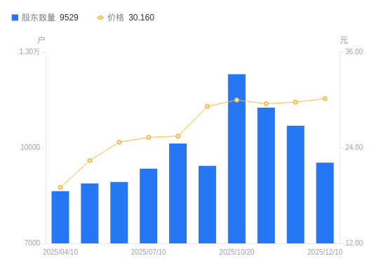 12月15日消息,数据显示,截至2025年12月10日,盈建科A股股东总户数为9529户,较上期(2025年11月10日)减少1160户,降幅10.85%。公司最新A股总股本为7943.07万股,其中流通A股6027.37万股,户均持有流通A股数量为6325.29股,较上期增加686.44股,增幅12.17%;户均持流通A股市值19.08万元,较上期增加2.32万元,增幅13.83%。