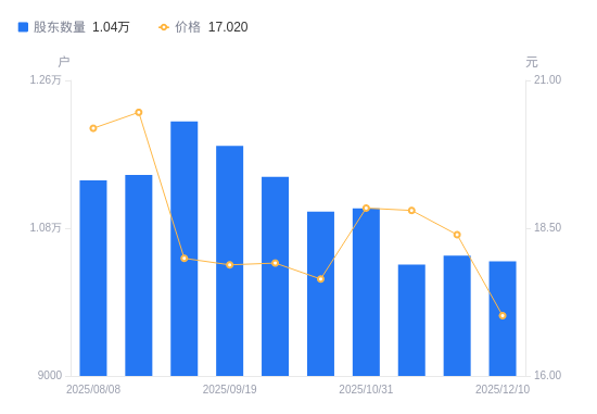 近一年(2024年12月10日至2025年12月10日),朗进科技A股股东户数从1.32万户,减低至1.04万户,降幅21.05%,区间股价下跌14.81%。