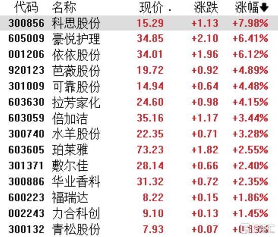 美容护理板块普涨,科思股份涨近8%,豪悦护理、依依股份涨超6%,芭薇股份、可靠股份、拉芳家化涨超4%,倍加洁、水羊股份、珀莱雅跟涨。消息面上,国家药监局发布《关于深化化妆品监管改革促进产业高质量发展的意见》。在加大化妆品产业创新支持力度方面,意见明确提出畅通新功效化妆品注册渠道,实行即报即审;鼓励国际化妆品新品在中国首发,免于提交境外上市销售证明。