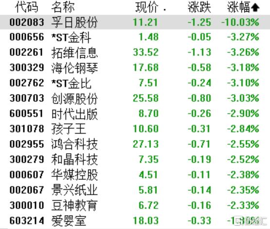 托育板块走低,孚日股份跌停,海伦钢琴、创源股份跌超3%,时代出版、孩子王、和晶科技、华媒控股跌超2%。