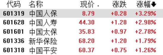 保险板块全线走高,中国人保涨3.29%,中国人寿、中国太保涨超2%,新华保险、中国平安涨超1%。