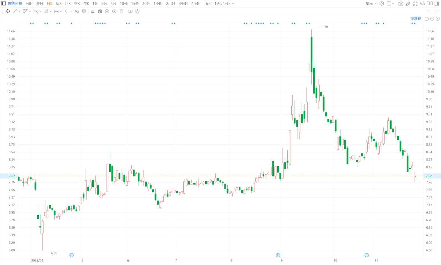 格隆汇11月26日|露笑科技(002617.SZ)今日盘中一度跌5.13%至7.76元,股价创8月19日以来逾3个月新低。露笑科技公告称,公司控股股东露笑集团及其一致行动人凯信投资管理有限公司-凯信露笑1号私募证券投资基金、凯信露笑2号私募证券投资基金、实控人鲁小均、李伯英、鲁永计划通过集中竞价和大宗交易方式合计减持不超过5727.52万股(即不超过剔除公司回购专用账户股份后总股本的3%)。(格隆汇)