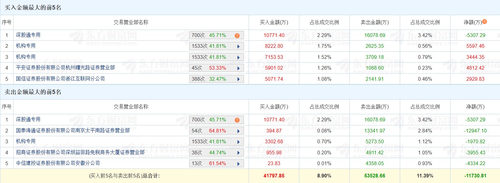 格隆汇12月9日|昨日涨停的通宇通讯(002792.SZ)今日跌8.3%,换手率45.54%,成交额46.98亿元。龙虎榜数据显示,深股通买入1.08亿元,卖出1.61亿元,净卖出5307万元;游资“作手新一”位列卖二席位,净卖出1.29亿元;三家机构买入1.87亿元,卖出1.16亿元,净买入7071万元。上榜席位全天买入4.18亿元,卖出5.35亿元,合计净卖出1.17亿元。(格隆汇)
