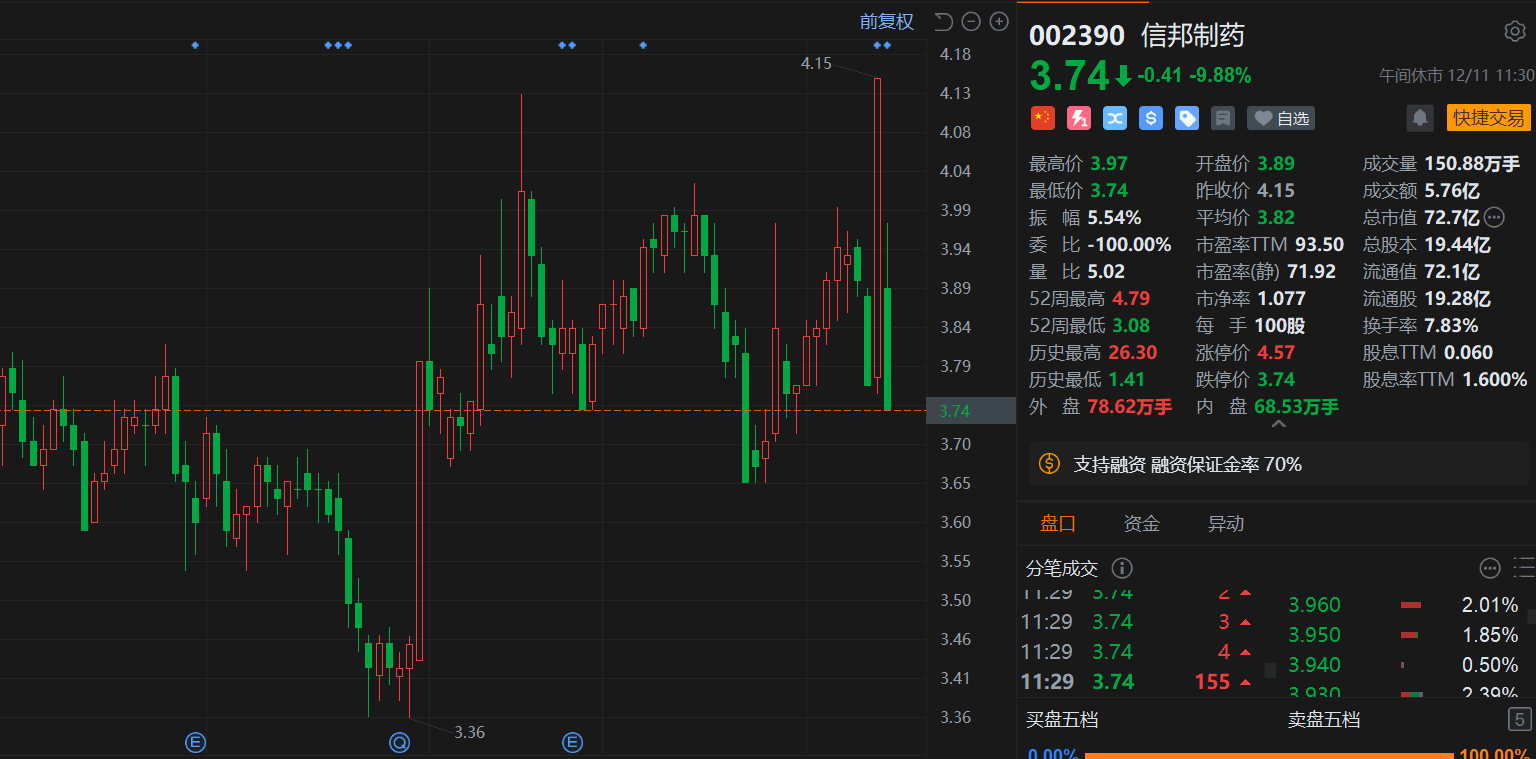 昨日涨停的信邦制药(002390.SZ)今日跌停,报3.74元,总市值72.7亿元。消息上,信邦制药公告称,公司近日收到检察机关《审查起诉阶段委托辩护人/申请法律援助告知书》、《犯罪嫌疑人诉讼权利义务告知书》,对公司涉嫌单位行贿一案,检察机关已收到监察委员会移送起诉的材料。该事项可能对公司品牌声誉、业务拓展及未来发展产生不利影响。目前案件处于审查起诉阶段,最终结果以司法机关出具的法律文书为准。