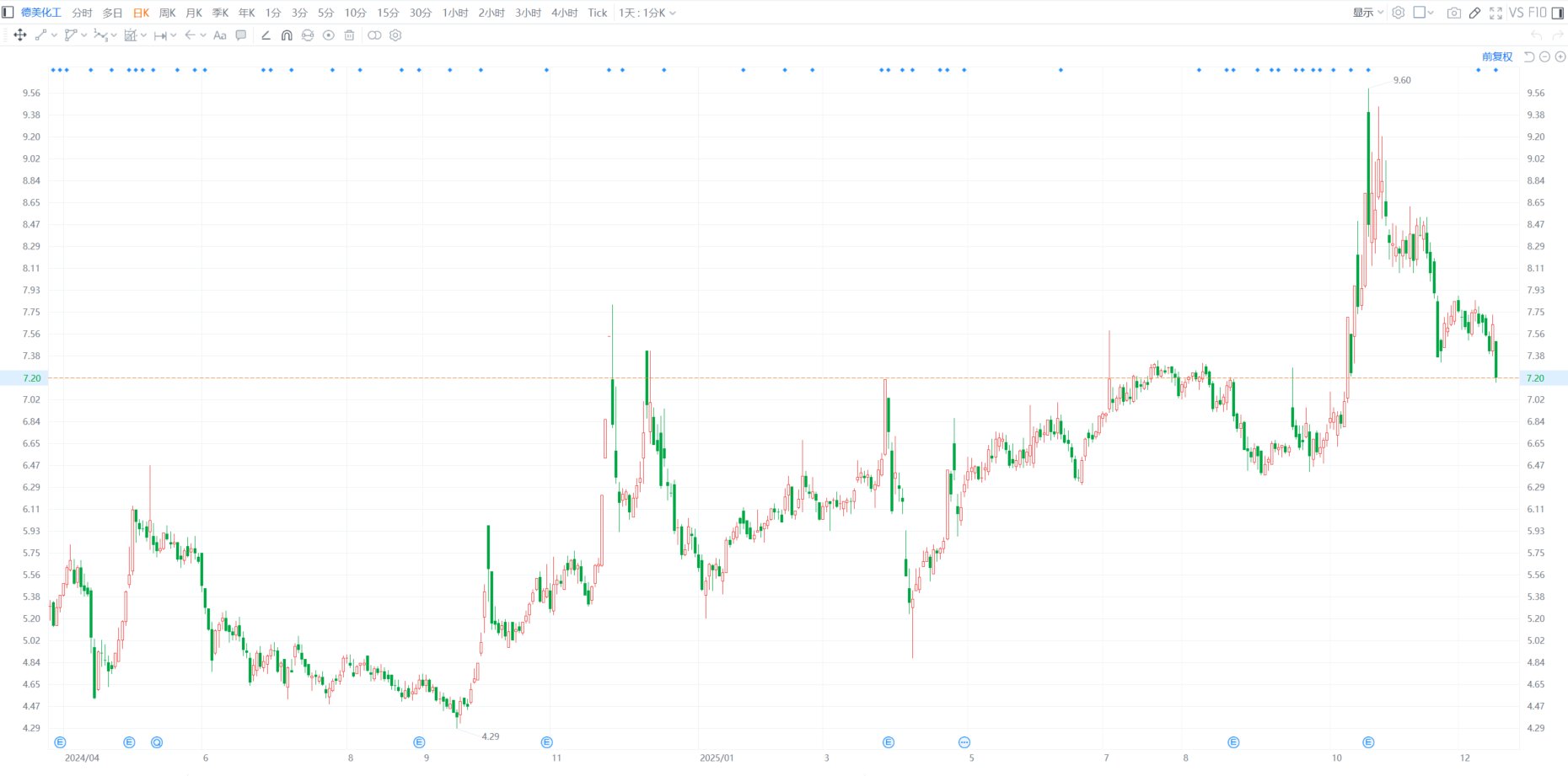 格隆汇12月16日|德美化工(002054.SZ)今日盘中一度跌6.28%至7.16元,股价创10月17日以来约2个月新低。德美化工公布,股东佛山市顺德区昌连荣投资有限公司计划在本公告披露之日起15个交易日后的3个月内通过证券交易所集中竞价交易、大宗交易方式合计减持德美化工股份不超过14,463,463股,即合计减持不超过德美化工股份总数的3%。(格隆汇)