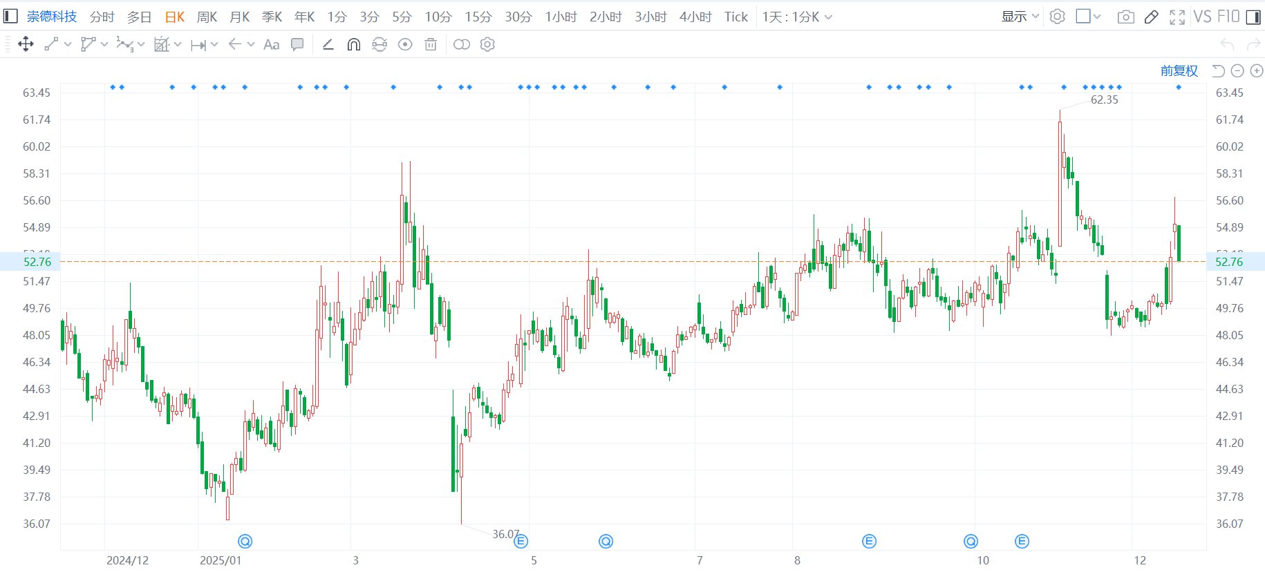 崇德科技(301548.SZ)现跌4.26%报52.75元,暂成交1.5亿元,最新市值45.89亿元。崇德科技公布,股东吴星明先生于2025年12月12日以大宗交易方式减持了公司股份1,671,513股,占公司总股本比例1.9213%(占剔除回购专用账户股份后的总股本的1.9307%)。上述权益变动后,吴星明先生持有公司股份数量为7,624,462股,占公司总股本的8.7637%(占剔除回购专用账户股份后的总股本的8.8069%),其本次减持计划已实施完成。(格隆汇)
