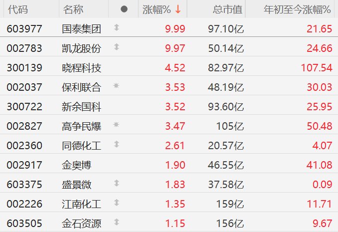 格隆汇12月22日|A股市场民爆概念股集体活跃,其中,国泰集团、凯龙股份涨停,晓程科技涨超4%,保利联合(维权)、新余国科、高争民爆涨超3%,同德化工(维权)涨超好2%。