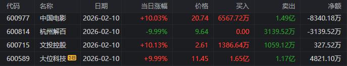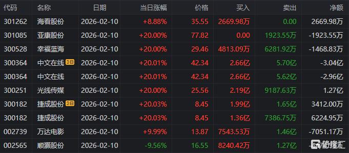 成都系:净买入中国电影1.513亿元、幸福蓝海4777万元,净卖出引力传媒6527万元