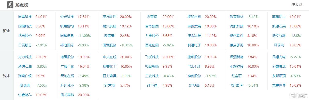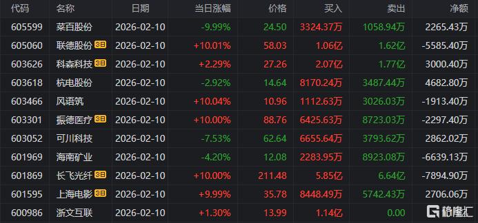 在龙虎榜中,涉及沪股通专用席位的个股有9只,浙文互联的沪股通专用席位净买入额最大,净买入1.14亿元。