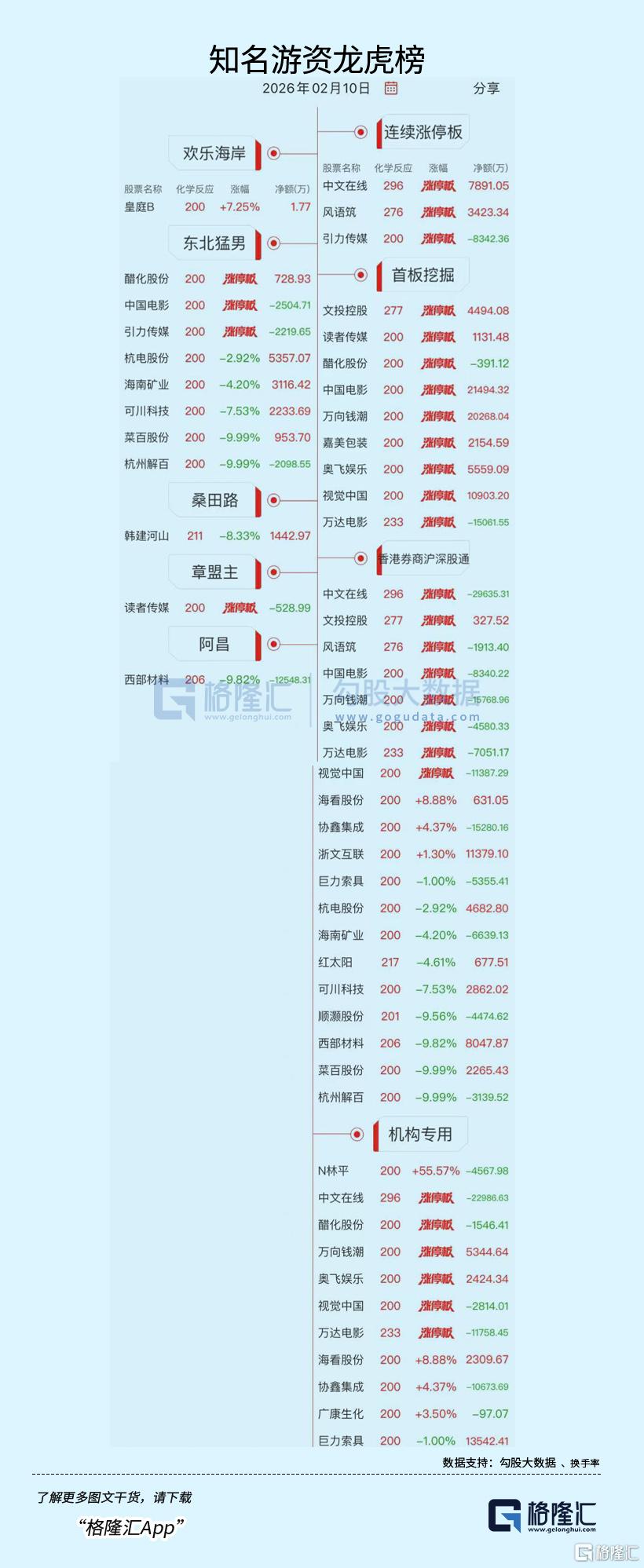 龙虎榜中涉及机构专用席位的个股中,当日净卖出额前三为中文在线、万达电影、协鑫集成,分别为2.3亿元、1.18亿元、1.07亿元。